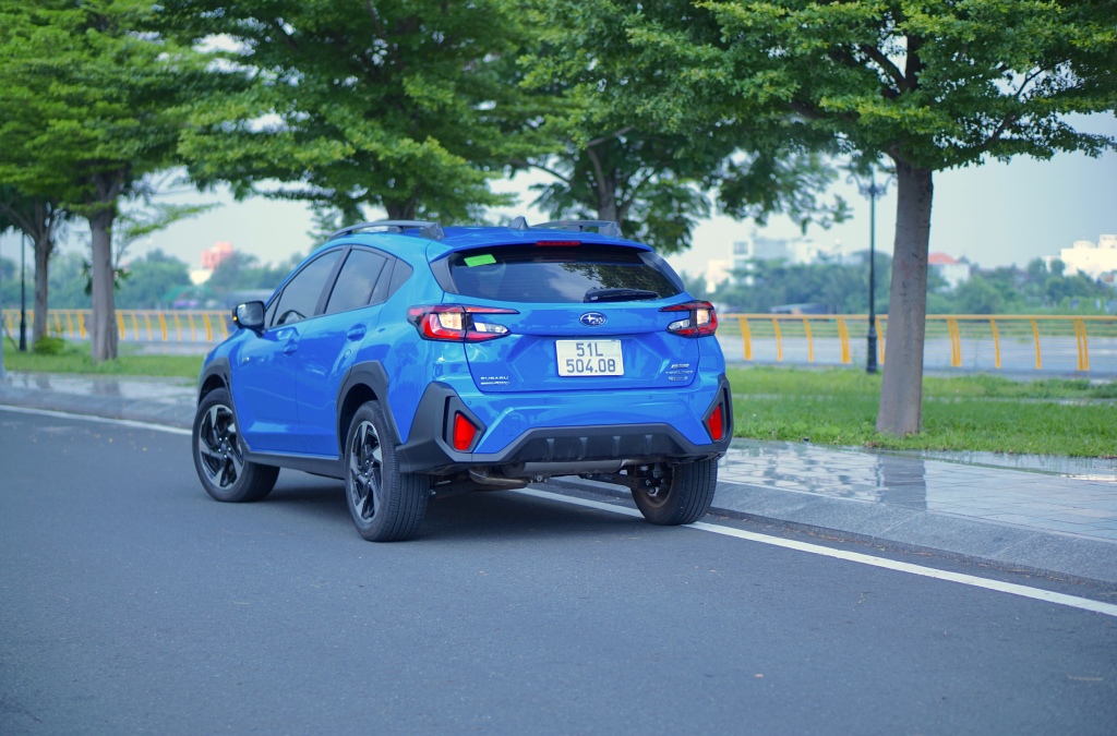 Đi về phía sau, Crosstrek đem đến thị giác của sự cứng cáp và năng động qua chi tiết cụm đèn hậu LED thiết kế cách điệu, kết hợp ốp nhựa đen thiết kế khí động học phía cản dưới và gần như ôm trọn cản sau. Thiết kế này tương đồng với phần đầu xe, giúp cho xe thêm sự gắn kết và liền mạch.